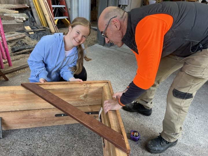 My favourite program is Podcasting at KNLC which I did last year. We recorded our stories on our Podcast ‘Next in Cue’, and my story was all about swimming and Grandad. This year I am building new skills by trying out the KNLC Trade course which I really enjoy. We are making a sandpit and pirate ship to donate to the local childcare.